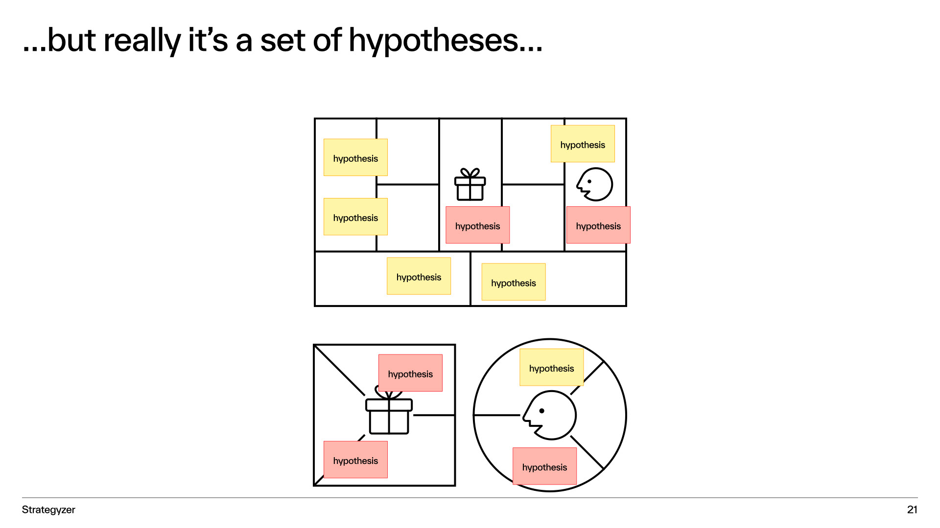 Applying a new visual system to presenters' slides to visualize the Strategyzer innovation methodology.