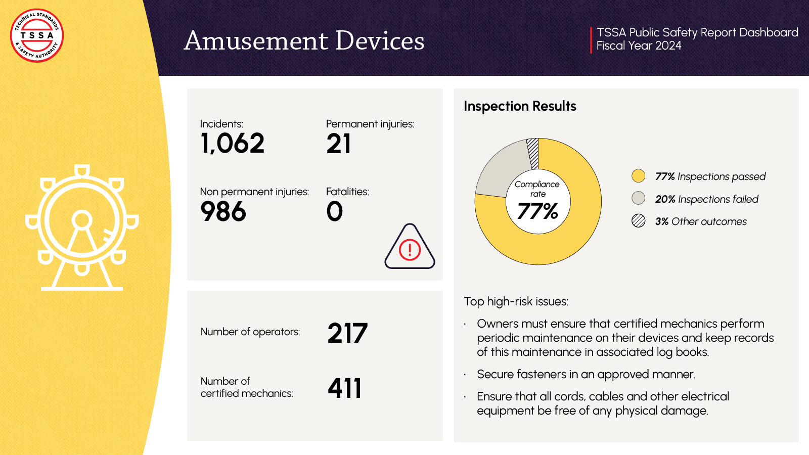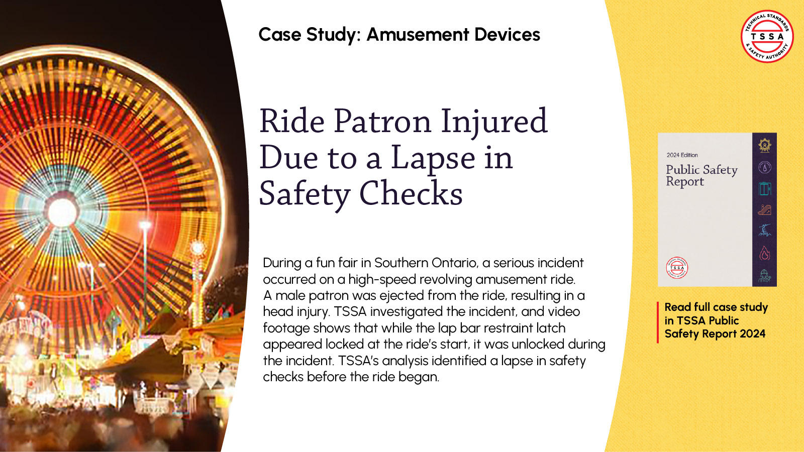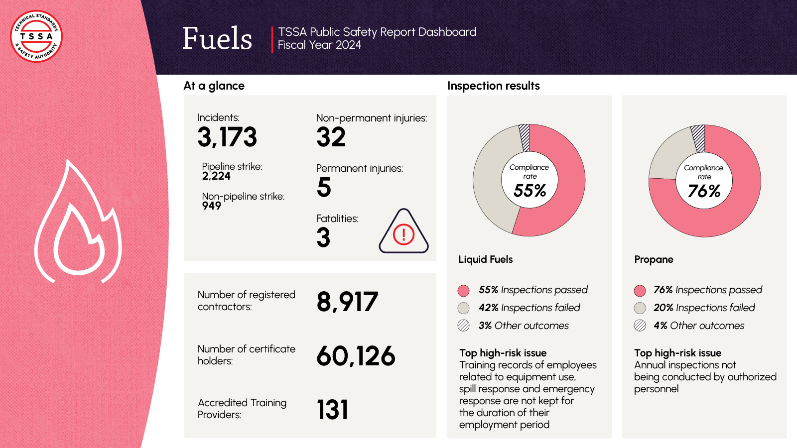 Throughout the year, the Technical Standards and Safety Authority shares excerpts from its safety data to help people understand the areas it regulates. Easy-to-read infographics show statistics, while case studies explain how safety issues play out in real situations.